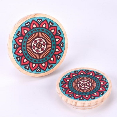Τα εξατομικευμένα ξύλινα καπάκια που εκτυπώνουν τα ξύλινα καπάκια του BYF είναι κατασκευασμένα από ανοιχτόχρωμο φυσικό ξύλο, με ένα μοτίβο εμπνευσμένο από mandala. Κάθε καπάκι έχει τη δική του μοναδική προσωπικότητα. Τα συμμετρικά γεωμετρικά σχήματα περιβάλλουν τα λουλούδια μοτίβα και τα ζωντανά χρώματα - πορτοκαλί, ροζ, μπλε και πράσινο - δημιουργούν μια καλλιτεχνική και μοναδική αισθητική. Τα καπάκια είναι ελαφριά και πρακτικά, προσφέροντας τόσο σφράγιση όσο και διακοσμητικές λειτουργίες. Είναι κατάλληλα για αρώματα στο σπίτι, διακοσμήσεις δώρων και άλλες εφαρμογές, συνδυάζοντας απόλυτα τη φυσική υφή με εξατομικευμένη αισθητική.